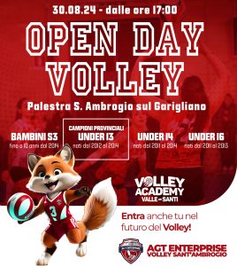 OPEN DAY VOLLEY Vieni a scoprire un movimento fatto di passione e sport, una piccola realtà di provincia che sta